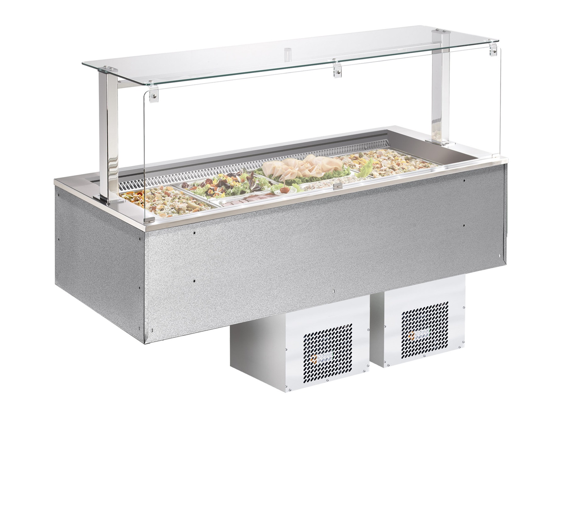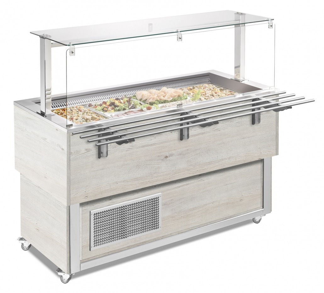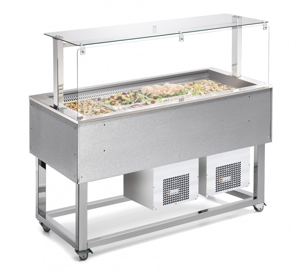 Isole del Servizio refrigerate con vasca ventilata e sovrastruttura in vetro con illuminazione a LED.