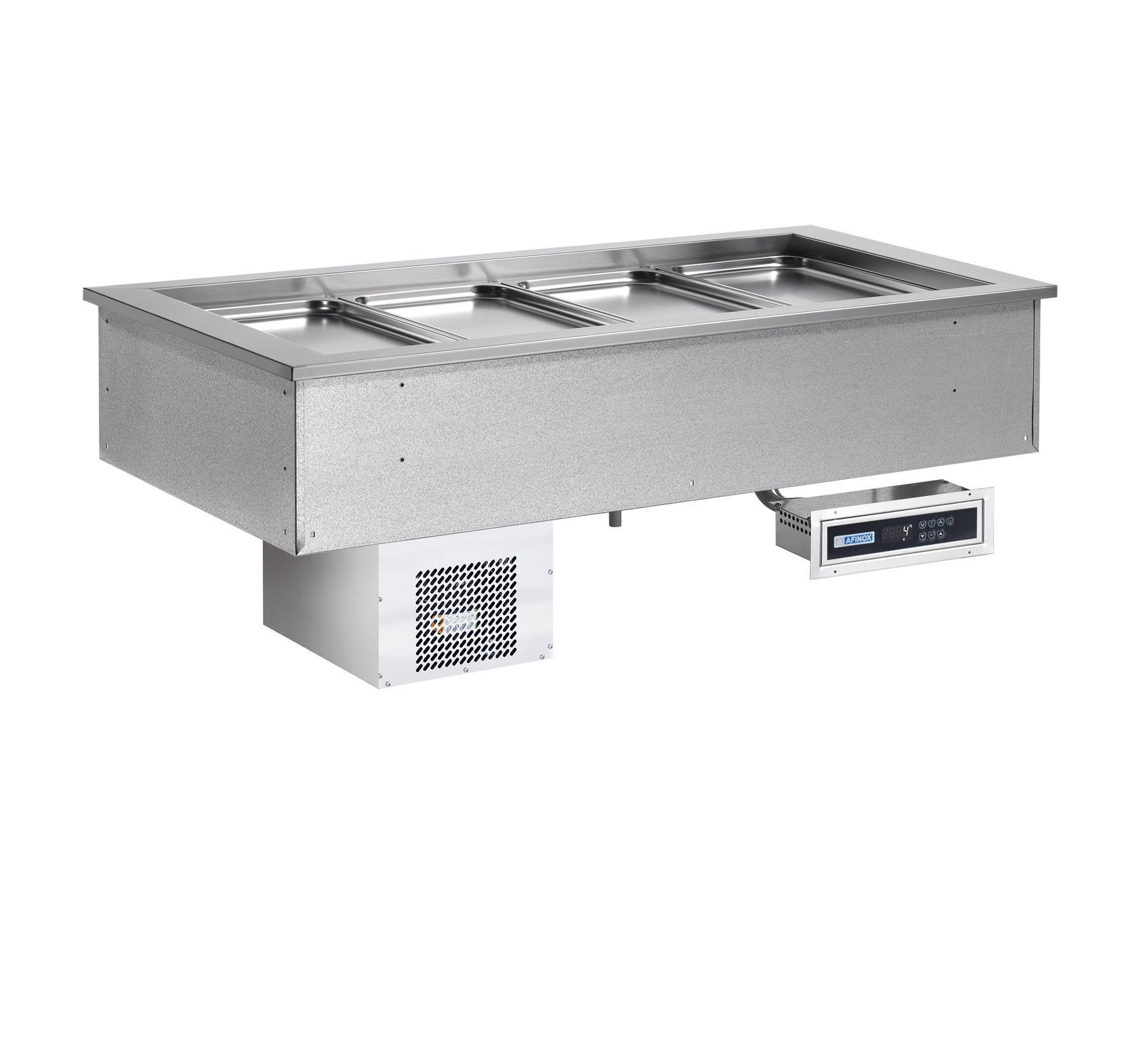As you know the cold air goes spontaneously downwards. That is why you should choose a drop-in with lowered housing. Remember that the correct temperature also depends on environmental conditions. Furthermore, it’s important to choose the perfect size and height of the GN containers on which food is displayed:
