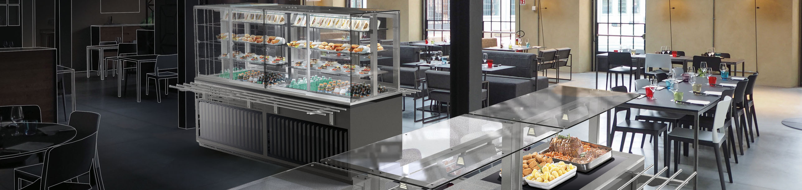 A display system based on bain-marie heat transmission is the most appropriate solution to offer warm, soft, and juicy dishes as if they were just cooked.