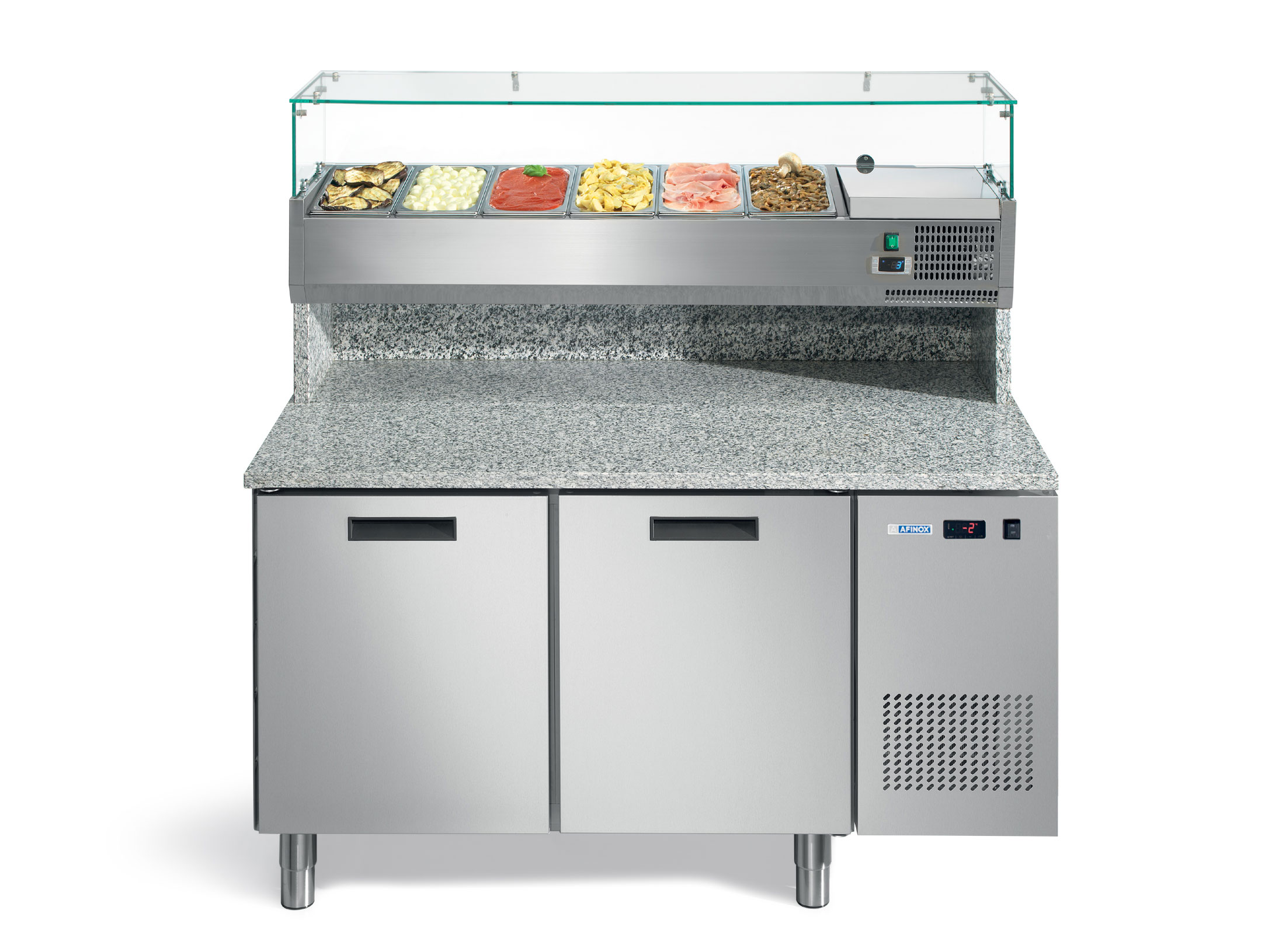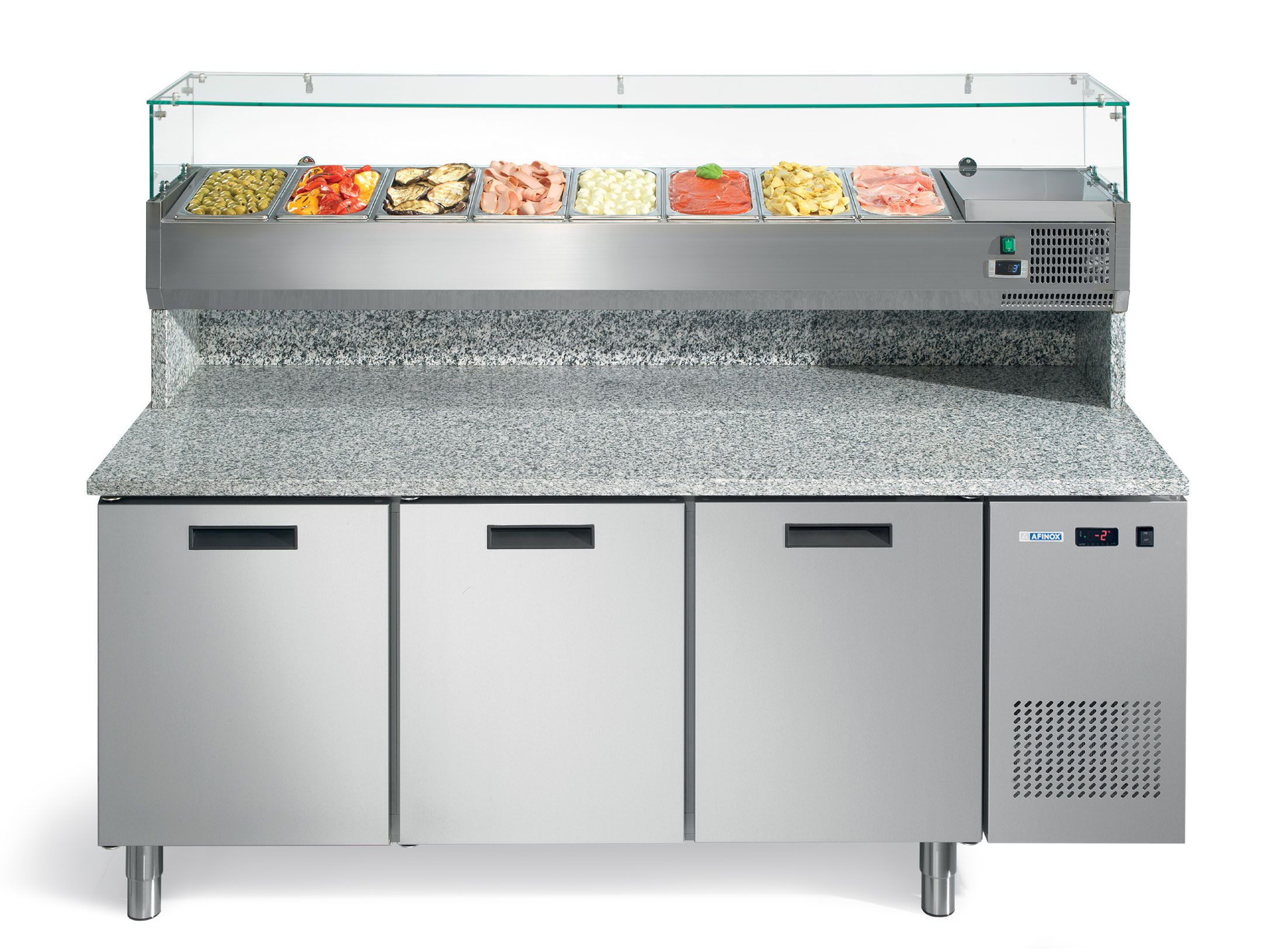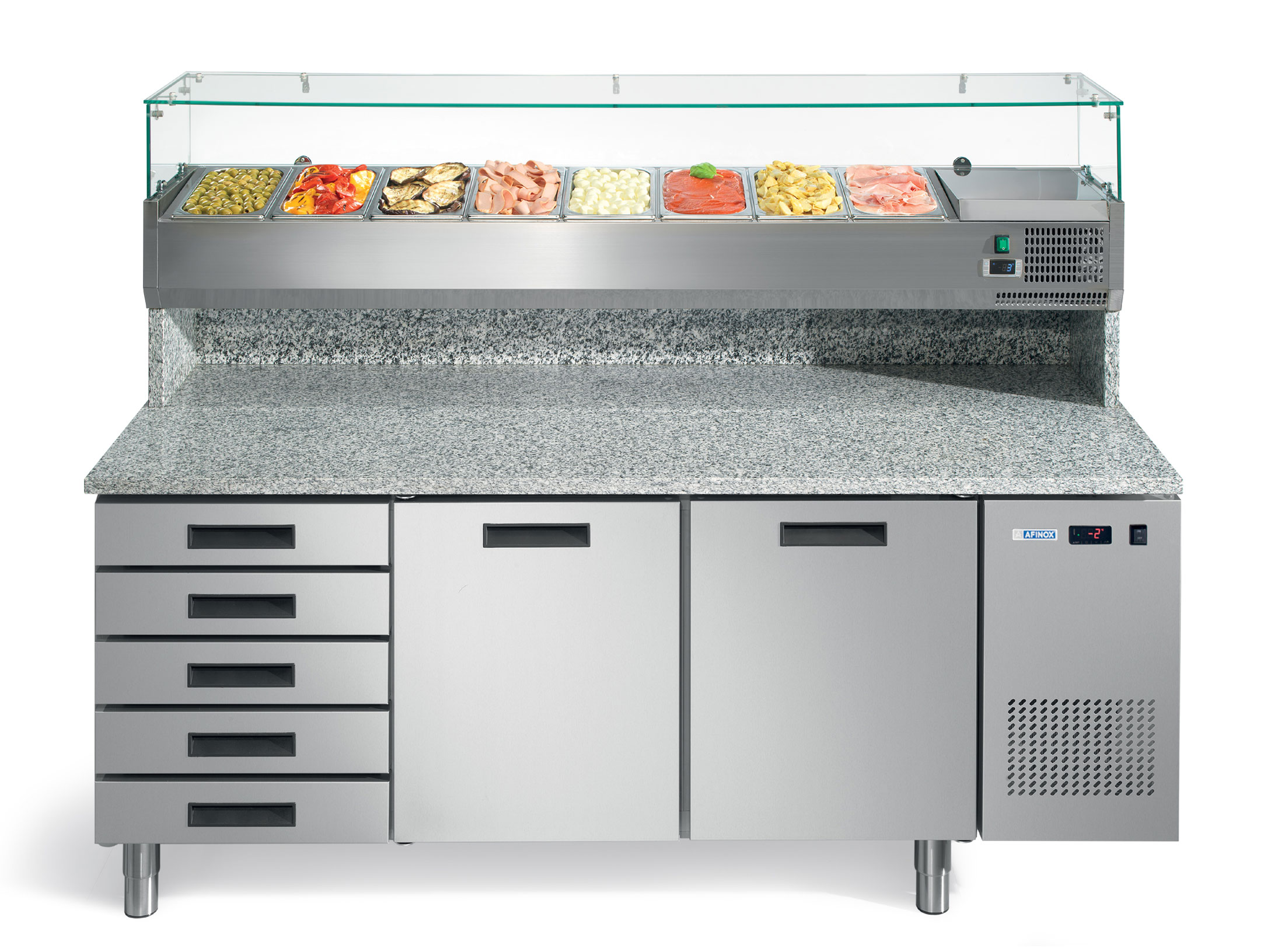 Las nuevas mesas refrigeradas para pizzería de la serie FRESH PIZZA PLUS son los equipos ideales para optimizar el espacio en las pizzerías. Gracias a su recubrimiento con PET y a su encimera de granito, son equipos que garantizan la máxima comodidad e higiene.