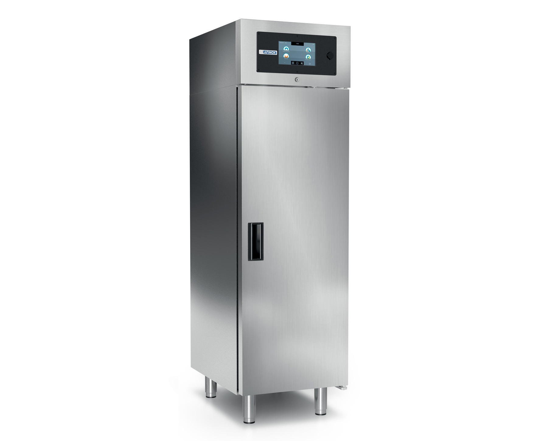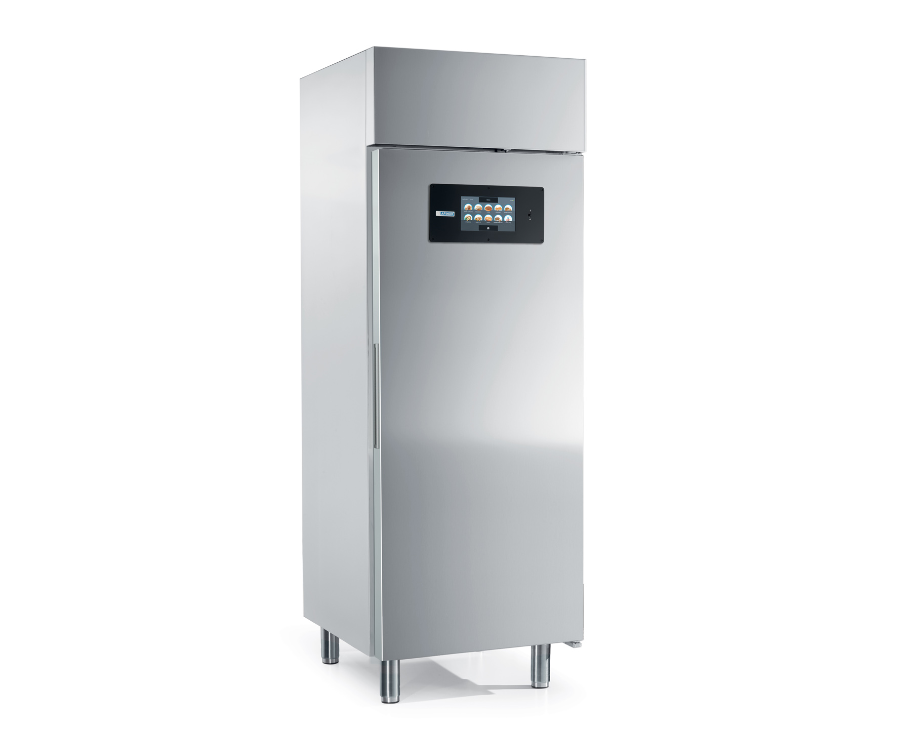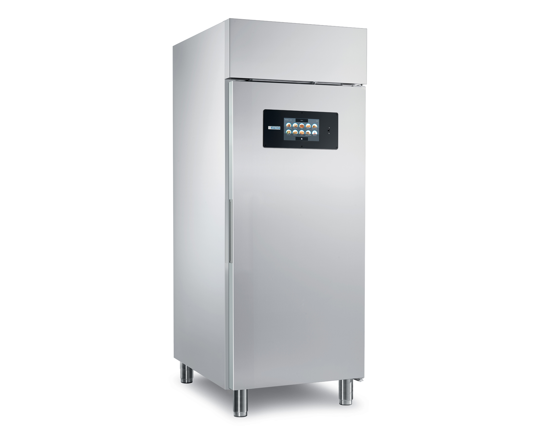 La pantalla táctil permite la gestión de los ciclos automáticos y manuales, personalizables en las tareas de fermentación de pan, pizzas, focaccia, crackers, galletas y dulces.