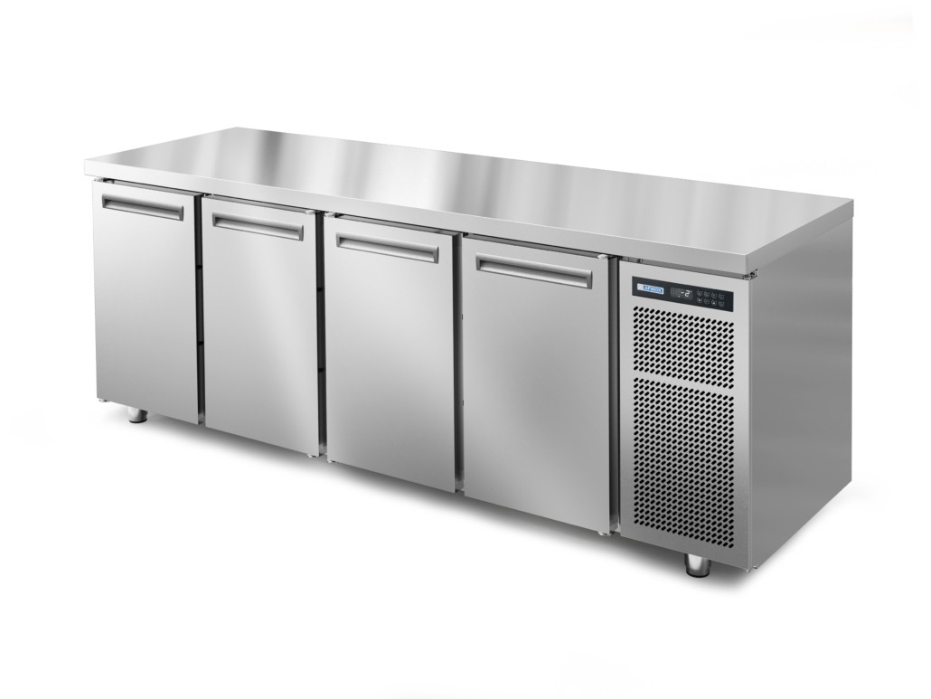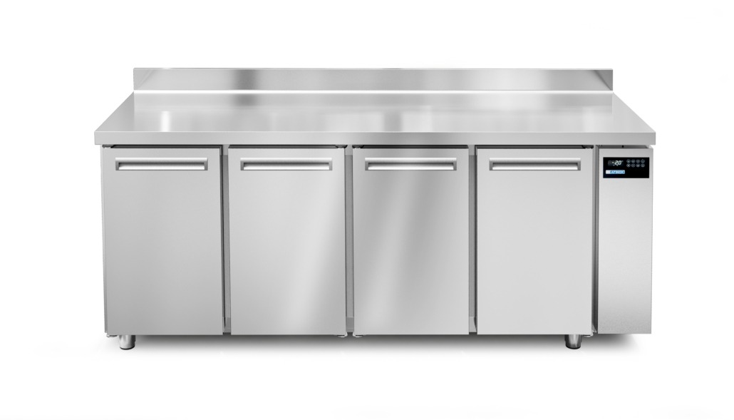 Les tables réfrigérées ventilées pour la restauration (modèles GN1/1), profondeur 700mm, HAUTEUR DE LA COQUE 760 MM, et isolation 60mm, hauteur max (h900mm), réalisées en acier inox AISI 304, gaz réfrigérant R290.