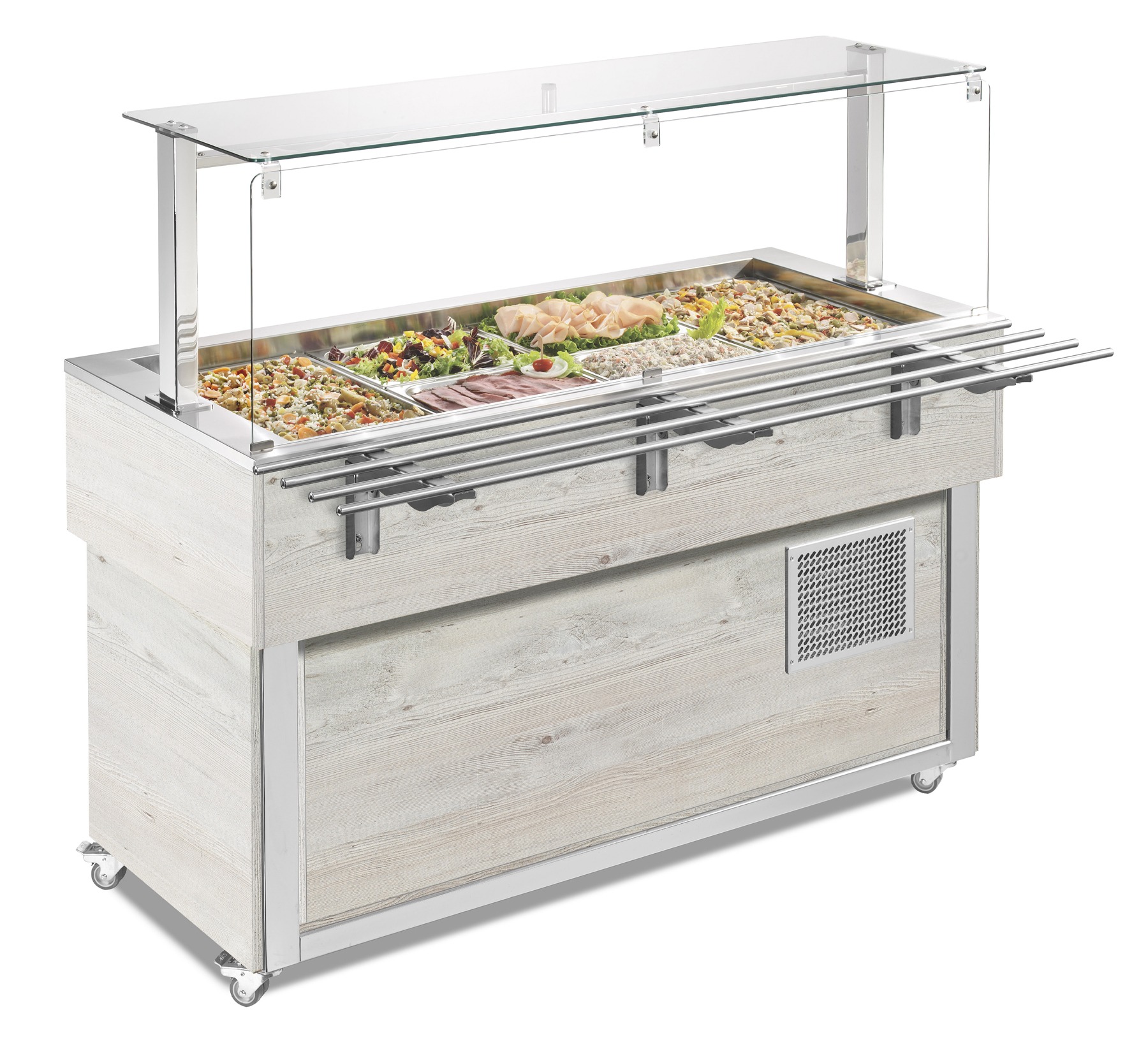 Isole del Servizio refrigerate con vasca statica, e sovrastruttura in vetro con illuminazione a LED