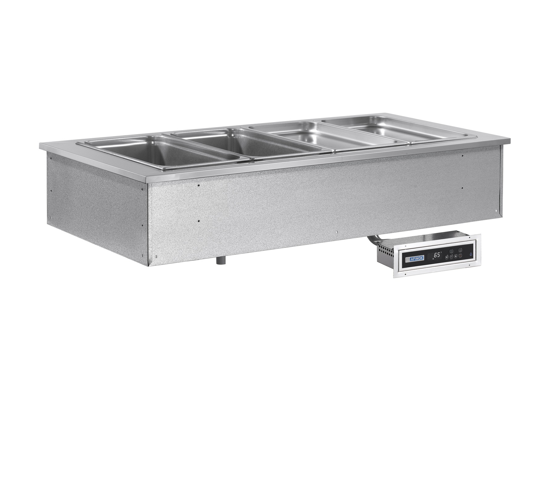 Vasche bagnomaria, con fondo arrotondato e diamantato per agevolare lo scarico dell’acqua e per una perfetta pulizia ed igiene.