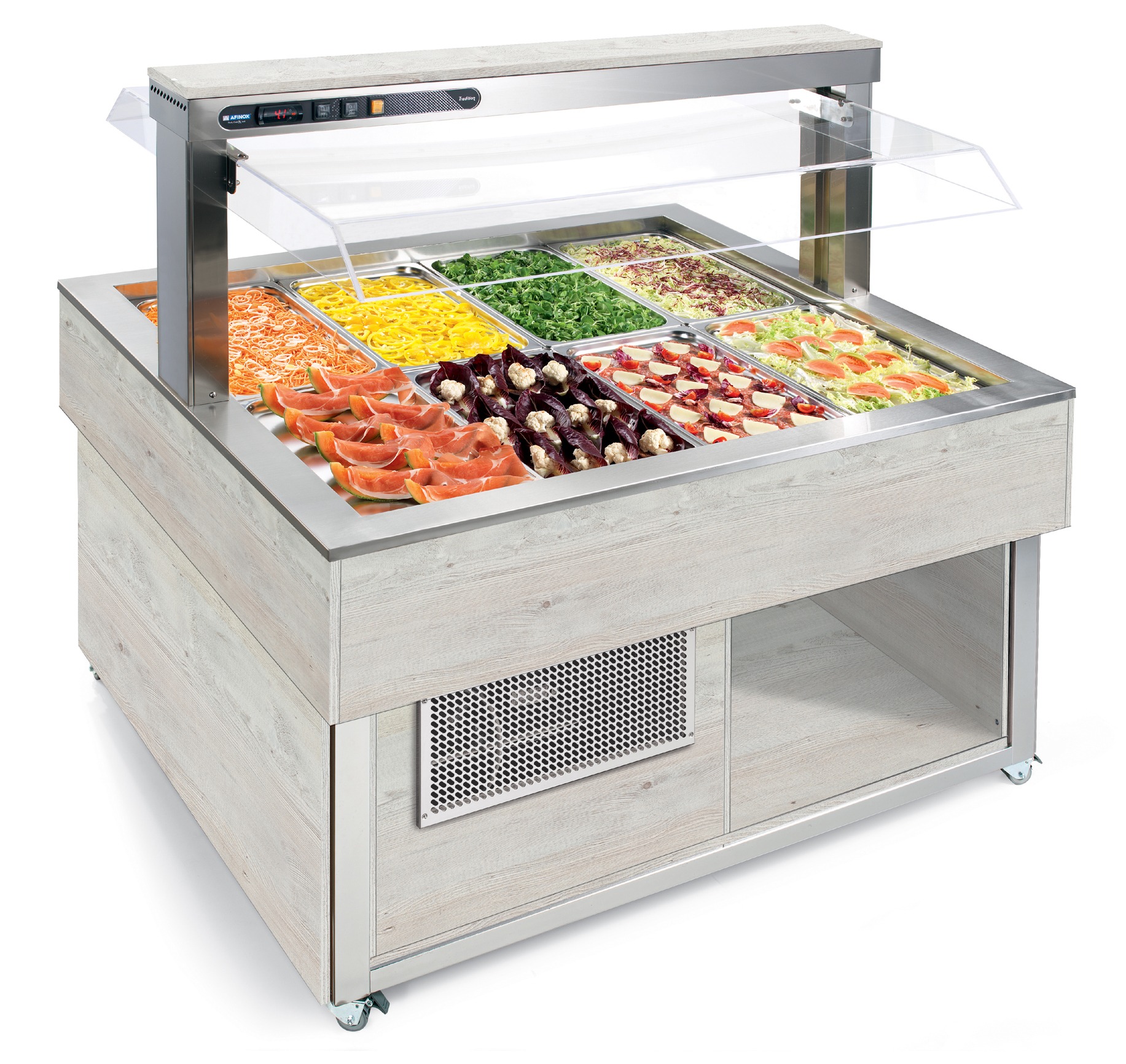 Per questo Afinox offre una linea completa di espositori per la ristorazione, come vasche e vetrine drop-in, isole del gusto