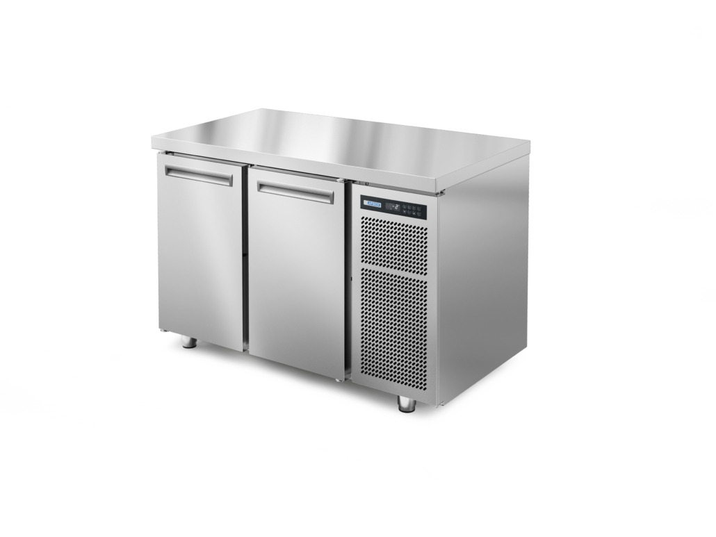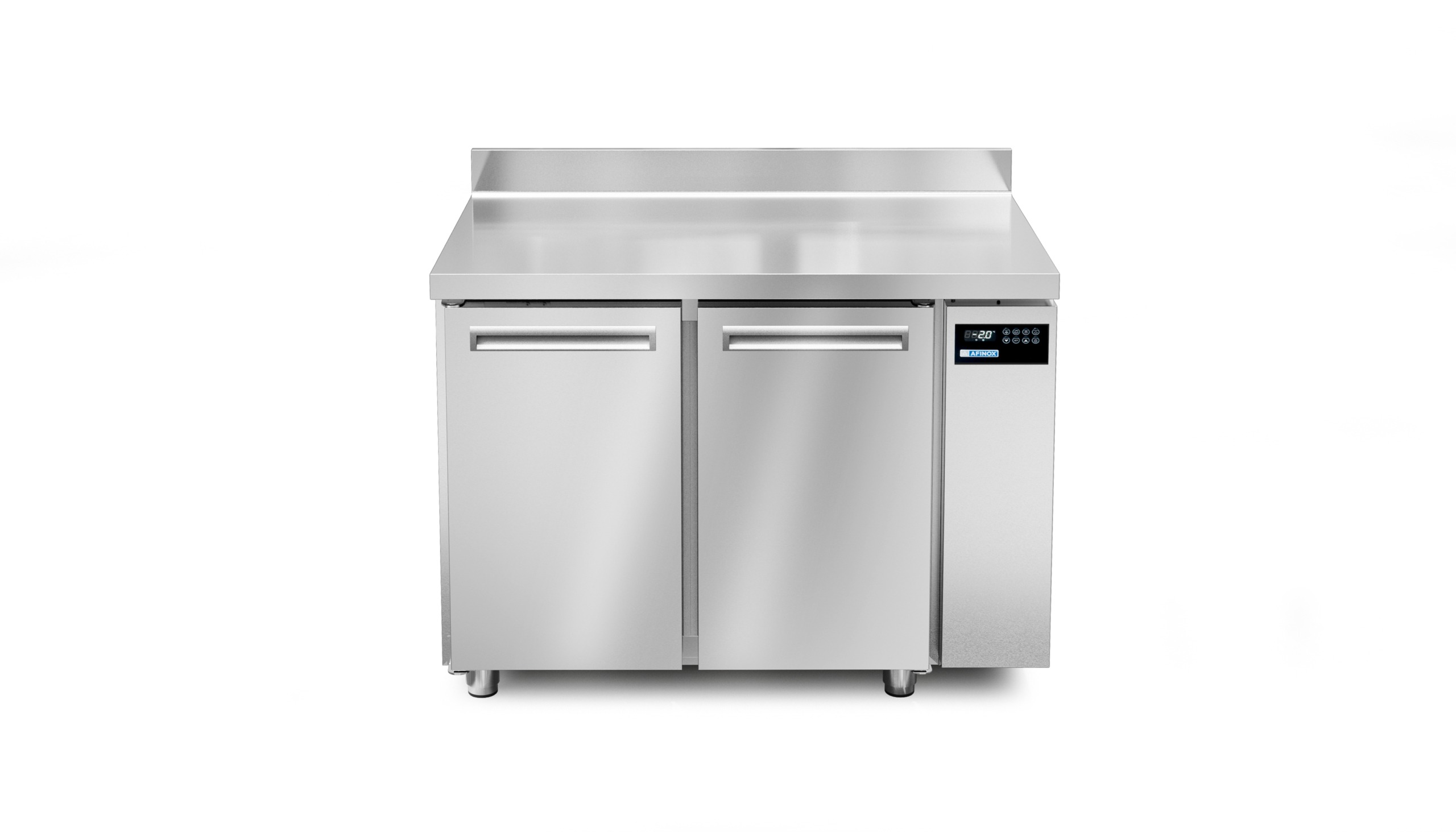I tavoli refrigerati ventilati per la ristorazione (modelli GN1/1), con profondità 700mm, ALTEZZA SCOCCA 760 MM, isolamento 60mm e maxi altezza maggiorata (h900mm), sono realizzati in acciaio inox AISI 304 e gas refrigerante R290.