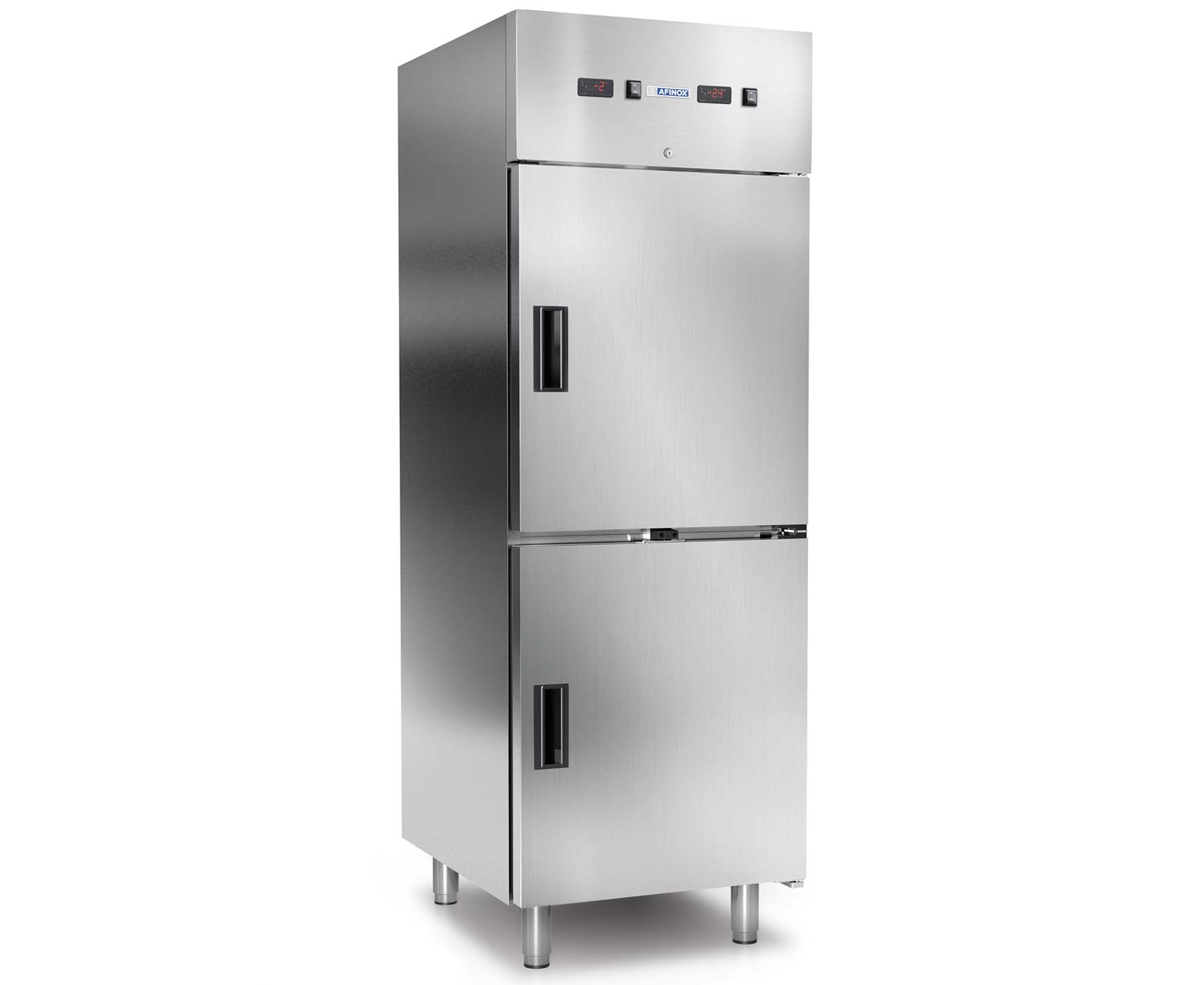 Grazie ai due vani separati, questo armadio refrigerato ti consente di scegliere tra la variante integralmente a temperatura positiva (TN/TN) e quella mista (TN/BT).